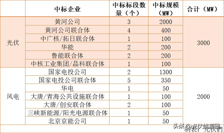 国家电投、国家电投联合体、华电、大唐/青海公共设施、大唐/青海创安、三峡/阳光电源、京能拟中标。