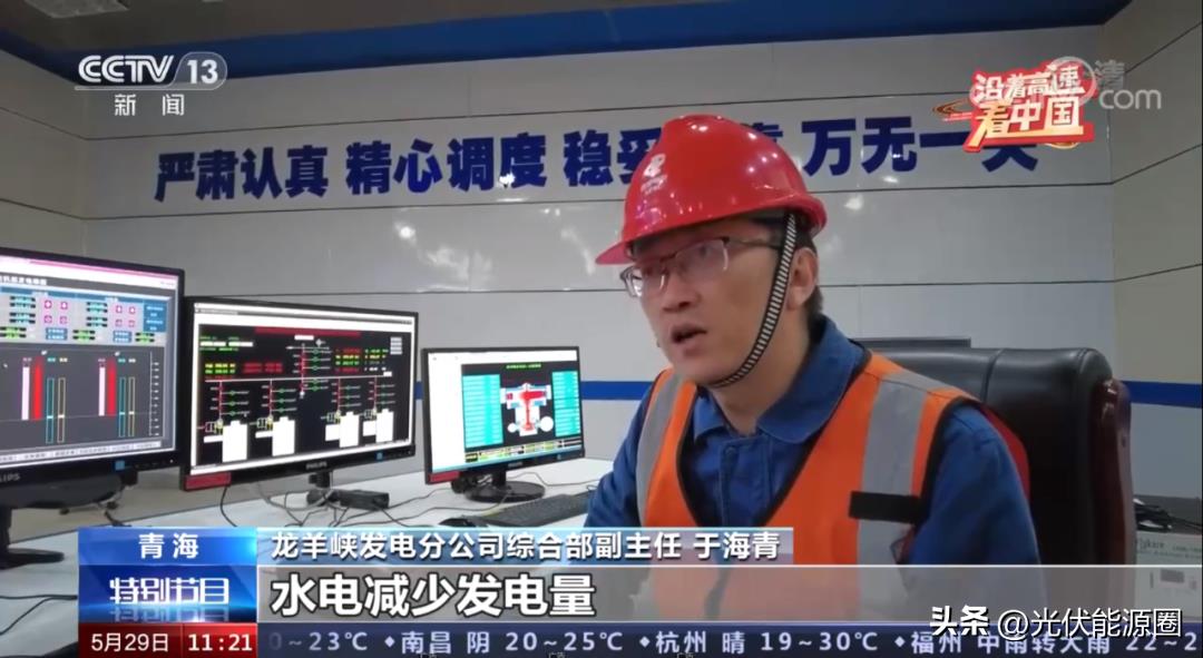 龙羊峡发电分公司综合部副主任于海青说:“每天我们龙羊峡水电站都有固定的一个发电量,光伏发电如果在白天的时候,发电量多的时候,水电减少发电量,晚上水电尽量多发电的时候,光伏减少发电量,来达到一个每天上网电量的恒定。”