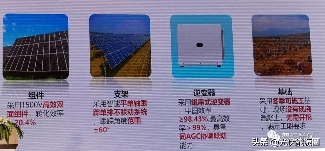 组件:采用1500V的高效双面组件,转换效率达到20.4%;