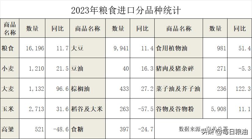 日前,我国海关总署公布了最新的2023年粮食进口数据,2023年粮食进口总量1.62亿吨,为历史第二高位,这也是自2015年以来我国粮食年度进口规模连续9年位于1亿吨以上的水平。