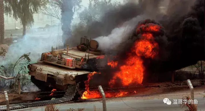 在伊拉克被库尔德武装发射的中国产红箭-8反坦克导弹击毁的M1A1