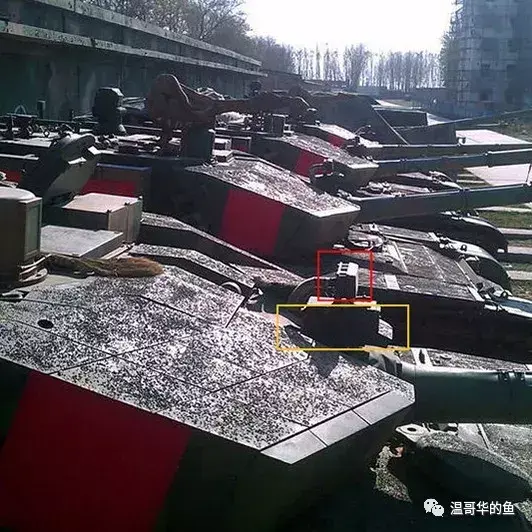 这样一套先进的主动防护系统,在99A上却发生了极大的变化。那个大蘑菇不见了踪影,大方盒子也变小了很多,取消了榴弹发射系统,也就是取消了破片硬杀伤手段,完全靠激光的软杀伤。据称该系统可以用于对付激光测距仪和红外制导反坦克导弹。