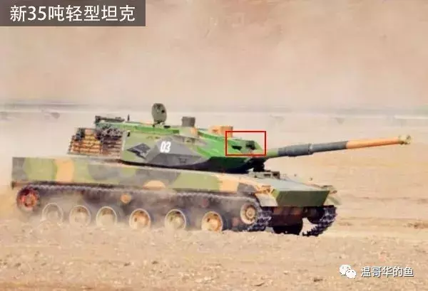 在最新型的35吨级轻量化主战坦克火炮根部也有完全一样的毫米波雷达装置,看来已经成为中国新研制坦克的标配。但新轻型坦克没有安装下面的光学系统以及炮口基准反射镜,可能是出于成本考虑及重量限制。