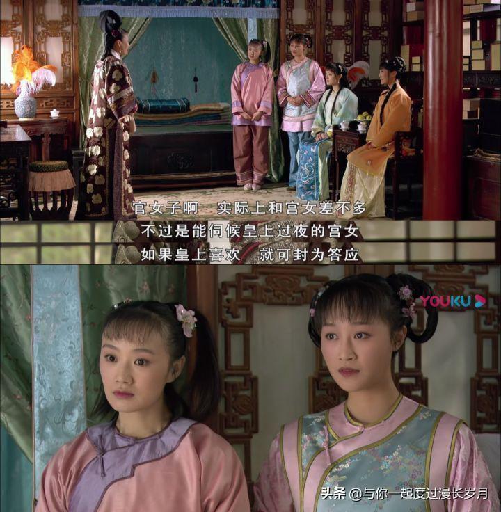 在未见到皇上之前,浣碧听到芳若姑姑说过,宫女是能上位成官女子的,侍奉皇上的宫女只要皇上喜欢,是可以封为答应的。流朱听了只是好奇,而浣碧眼神里却透露着渴望,激起了她的上位之心。