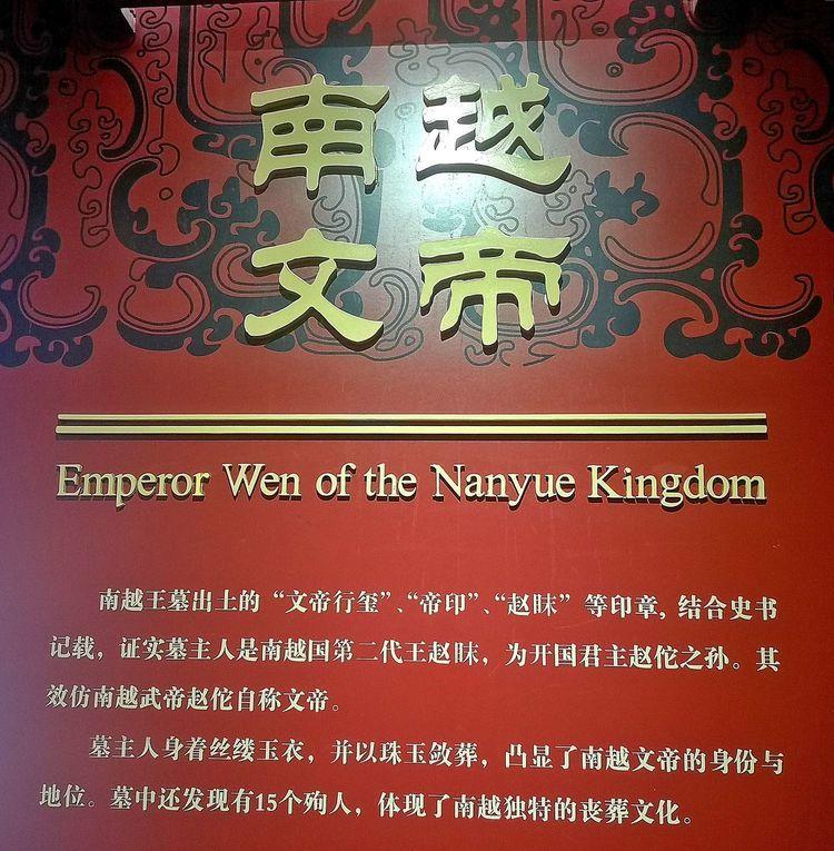 该墓主人是南越开国之君赵佗的孙子——第二代南越王赵昧。陵墓的建造距今已有2100多年。墓中有15名殉葬人和1000多件珍贵的随葬品,主要是玉器和青铜器。