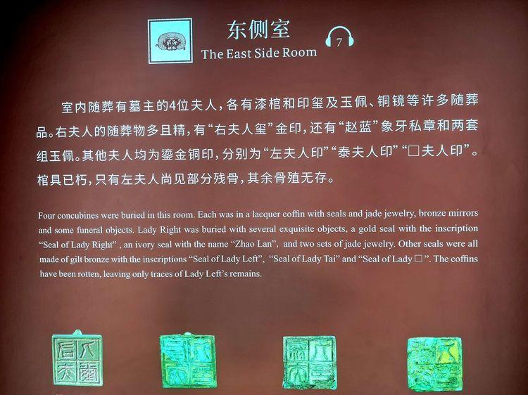 我沿墓道走下去,从阳间步入阴间只需一分钟时间,没想到墓主人一呆就是2100年。我在黑暗的墓室里看介绍,身后一位男士忽然打了一个喷嚏,确实把我吓了一跳,还以为墓主跑回来了。哈哈!