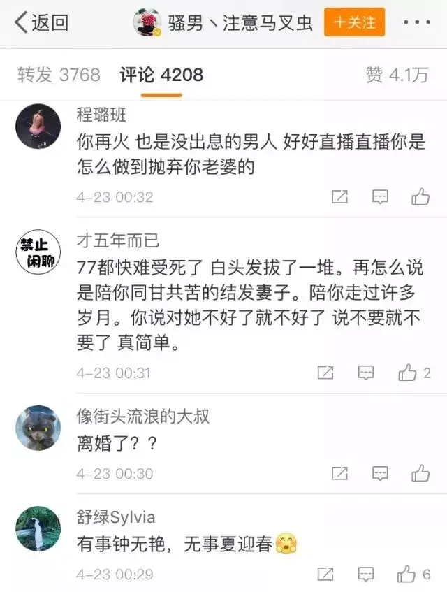 大家对骚男离婚这件事怎么看呢?欢迎大家在下方评论区留言讨论!