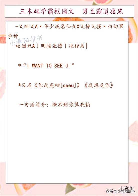 今天推荐三本校园文,双学霸甜甜的恋爱文,男主腹黑霸道。这三本都不错,最喜欢第一本。