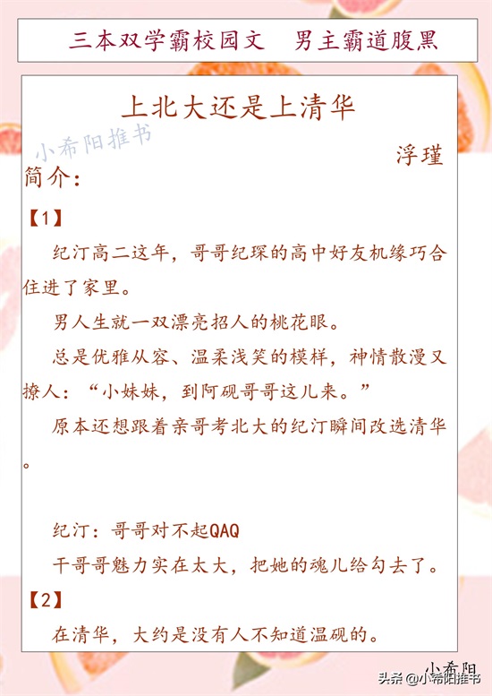 推文:三本双学霸恋爱甜文 男主腹黑霸道《上北大还是上清华》