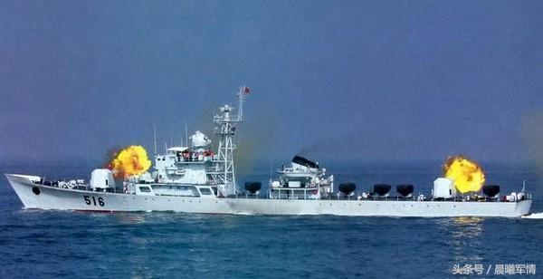 作为一艘排水量仅仅1660吨的小型护卫舰能被评为十大名舰只要是因为他不但是我国服役时间最长的护卫舰,更是因为他被改装成了我国唯一的一艘火力支援舰。改造后的516舰具有令人恐怖的火力,250管122火箭炮和两门双100毫米舰炮使人不寒而栗,几乎就是一艘小型的武库舰。