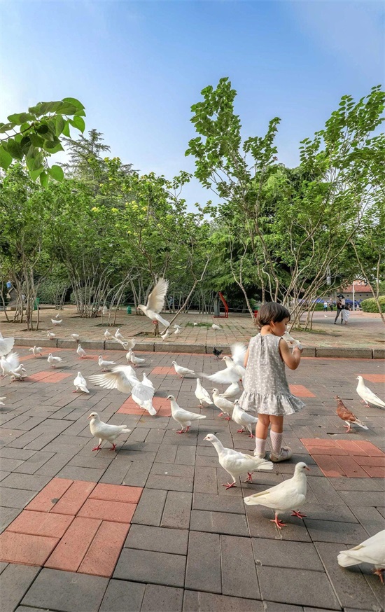 紫荆山广场上的广场鸽,最受大小朋友欢迎。1998年公园引入广场鸽,从此,到紫荆山喂鸽子,成为郑州人逛公园的固定操作。