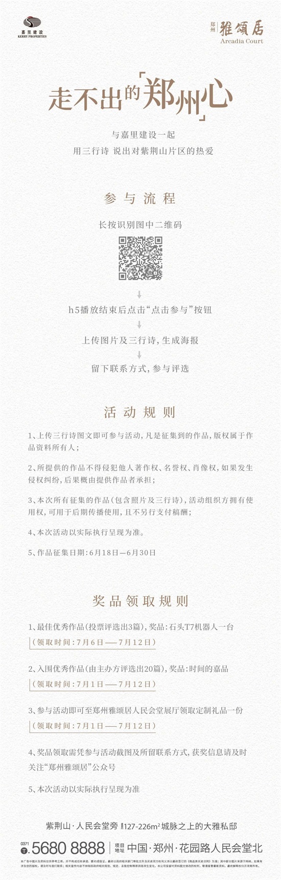 今天由嘉里建设发起了一个线上征集活动:「与嘉里建设一起,用三行诗,说出对紫荆山片区的热爱」。欢迎你的参与和创作▼