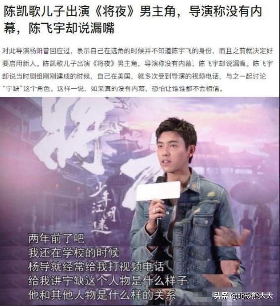 不仅如此,陈飞宇比哥哥陈宇昂会讨人欢心,也比较懂事,正所谓听话的孩子有糖吃,因此陈凯歌夫妻两也重点培养帅气的小儿子陈飞宇。