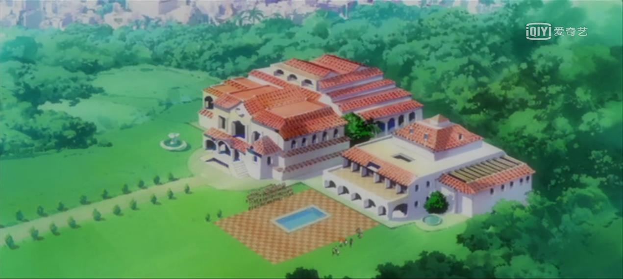 首先,映入大家眼里的是迹部家庄园式的别墅,经过长长的走道才到达别墅,别墅前面并带有私家游泳池。