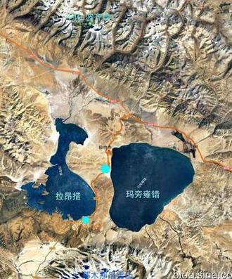 山脚下,有两个天然湖泊,相隔只有15公里,一个淡水湖一个咸水湖,被当地称为圣湖(玛旁雍措)和鬼湖(拉昂错),这两个湖泊与冈仁波齐一起构成了“神山圣湖”区域。