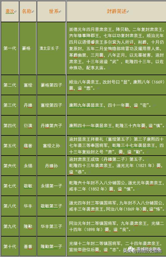历代肃(显)亲王沿袭表: