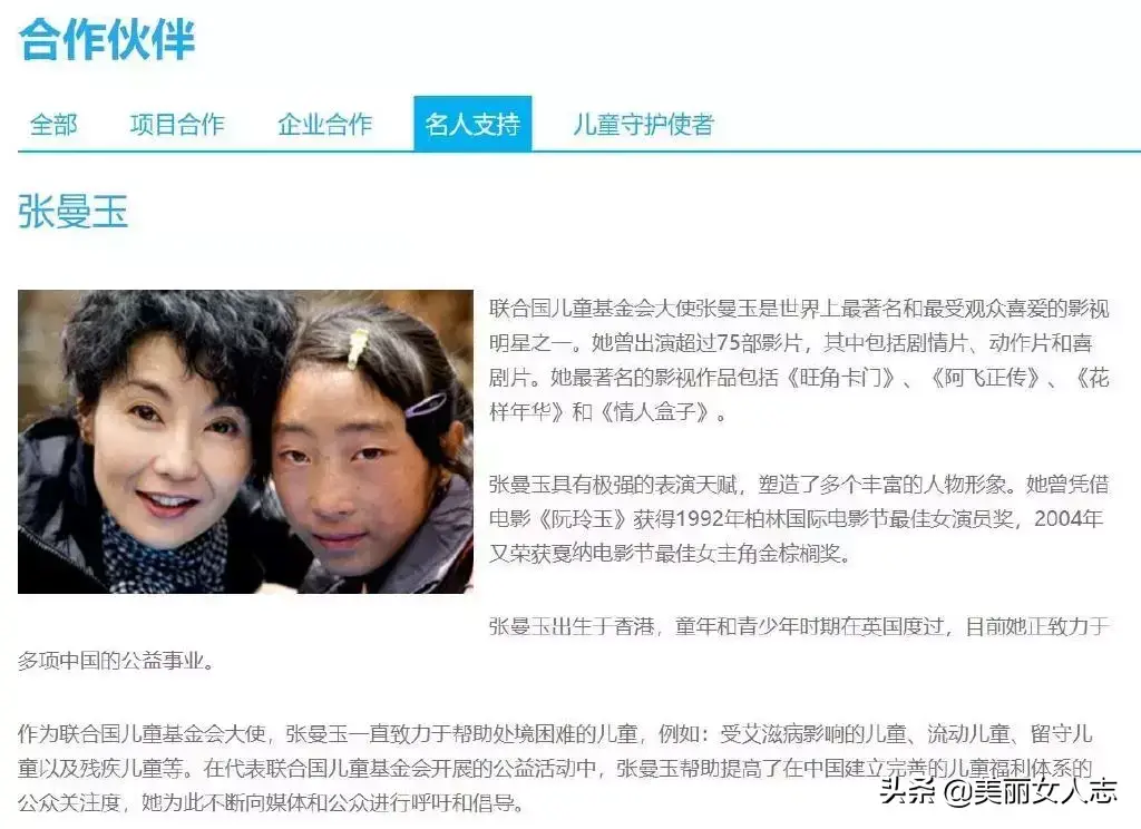 多年来,联合国儿童基金会驻华办事处一直用这张珍贵合影,作为“名人支持”页面的官网图。▼