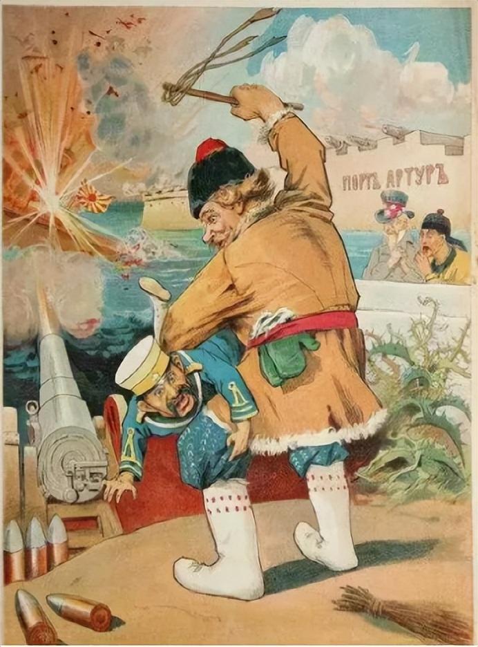 俄国人绘制的日俄战争漫画 表现了俄国人对日本的轻视