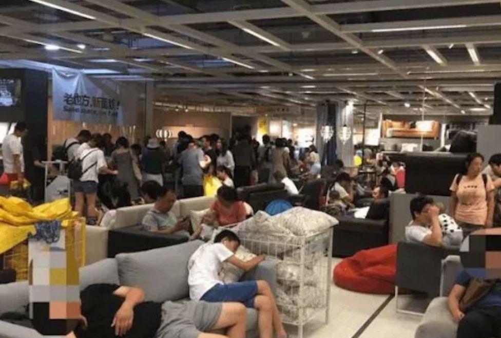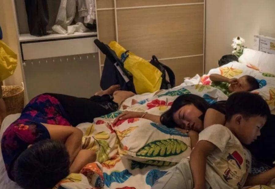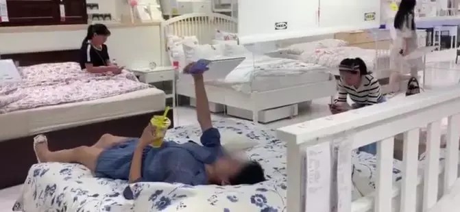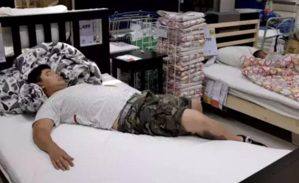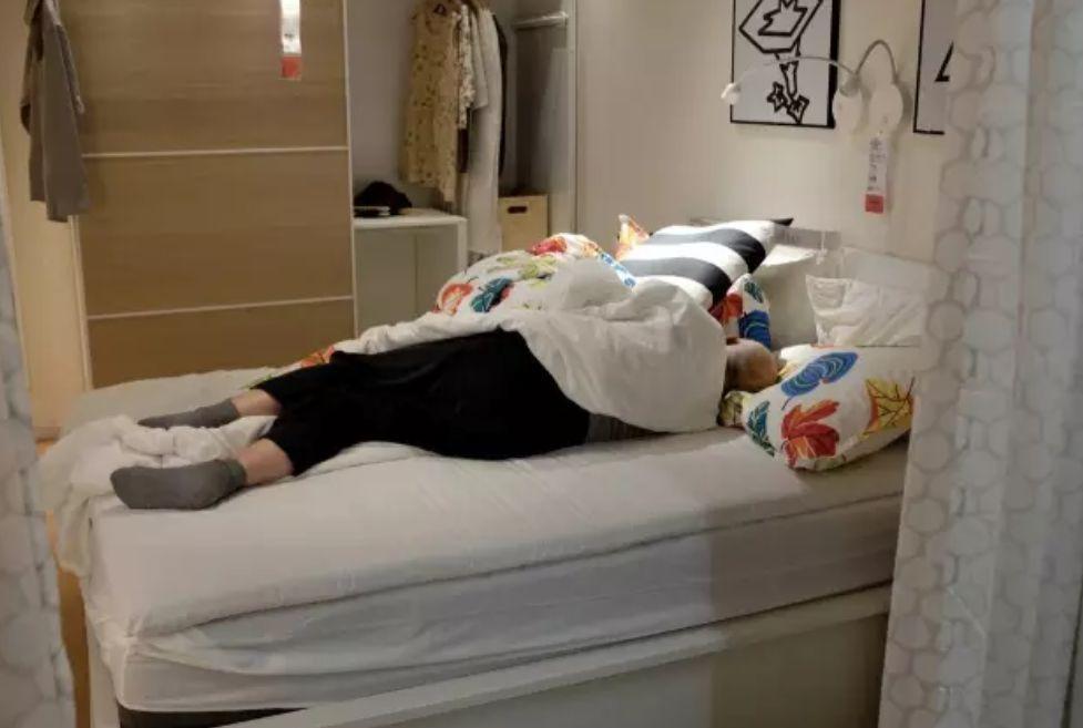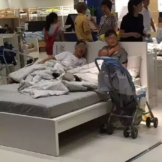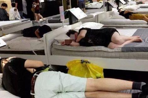 站在宜家,放眼望去,几乎每张床上都睡着人...