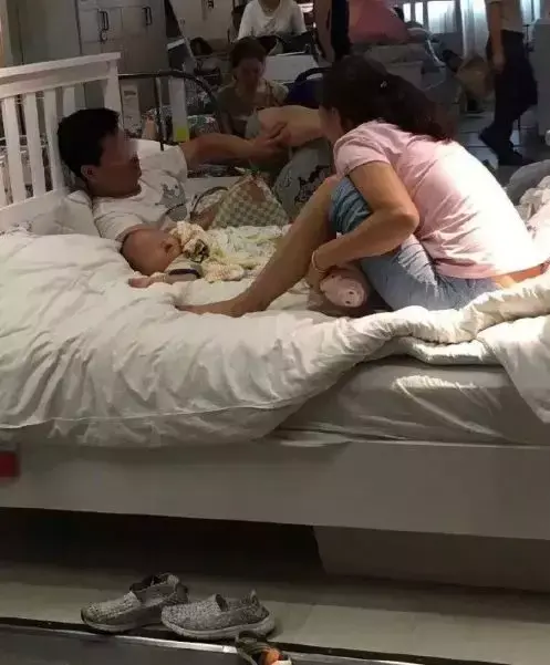 有人抱着孩子躺在床上,聊天寒暄...