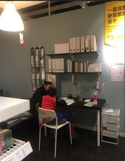 在宜家的书桌上认真做起了作业...