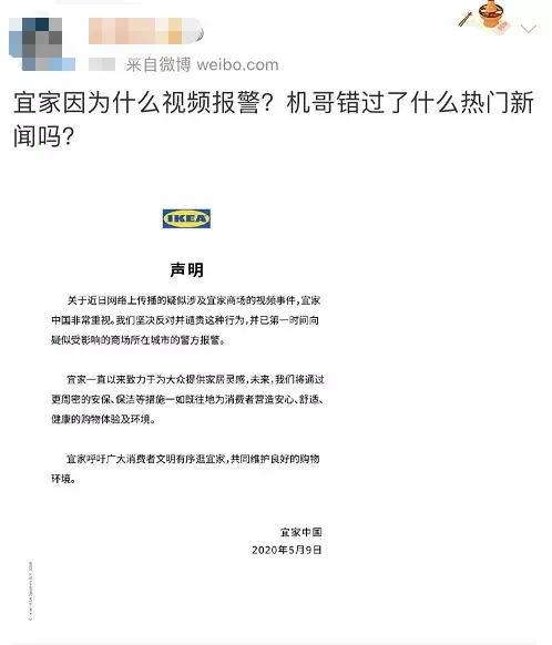 近日,针对之前有个女的在宜家拍视频,宜家报警了!