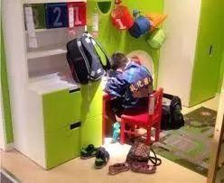 放下书包,脱下鞋,俨然已把宜家当自己家...