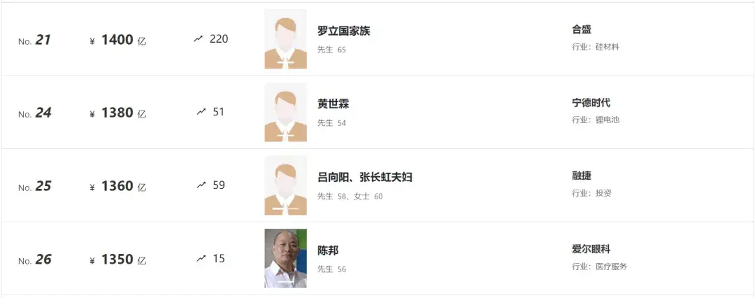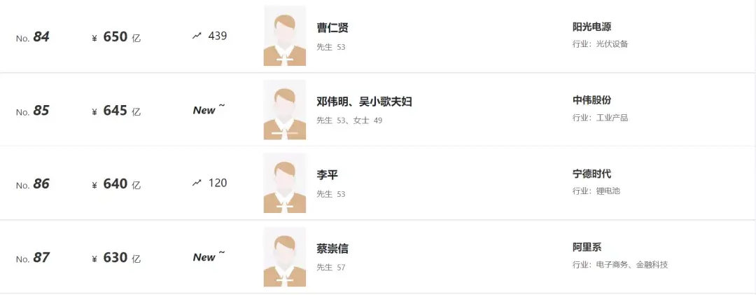 不难看出,在宏观的管控之下,互联网、房地产、教育、游戏等行业的市值都在缩水,而我们看看今年位次上升迅速的曾毓群(新能源电池)、魏建军夫妇(新能源汽车)的行业所属,不难发现,新能源的发展势头难以阻挡,在未来的榜单中,相信会有越来越多新能源行业的领军企业。