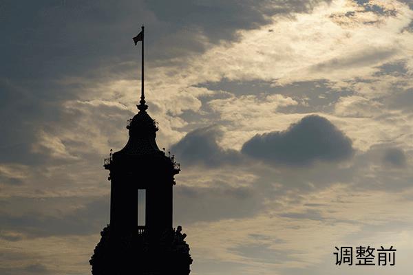 为了考察A9的宽容度,我们拍摄了一张大光比的照片。原片中为了保留高光,建筑已经是死黑了。笔者通过ACR打开RAW档,+0.5EV曝光、-100高光、+100阴影、-100白色、+100黑色,通过这样的调整,建筑的色彩已经拉回来了。