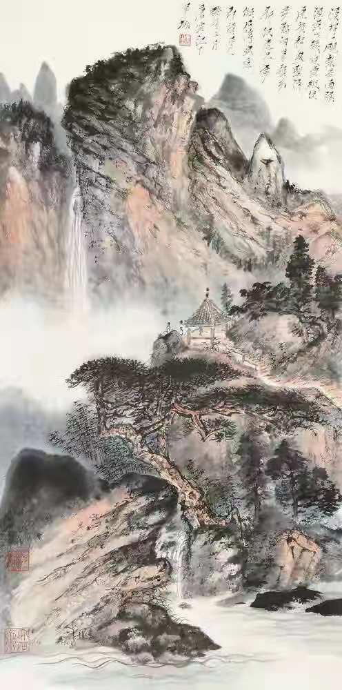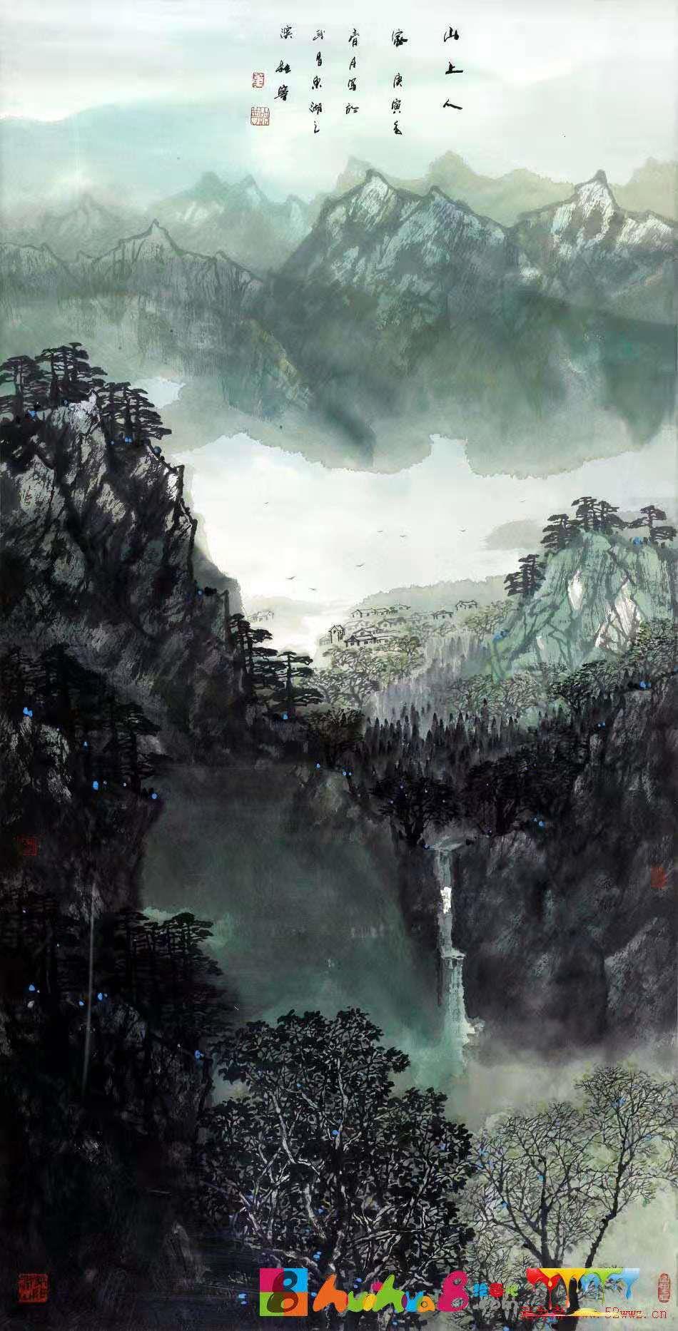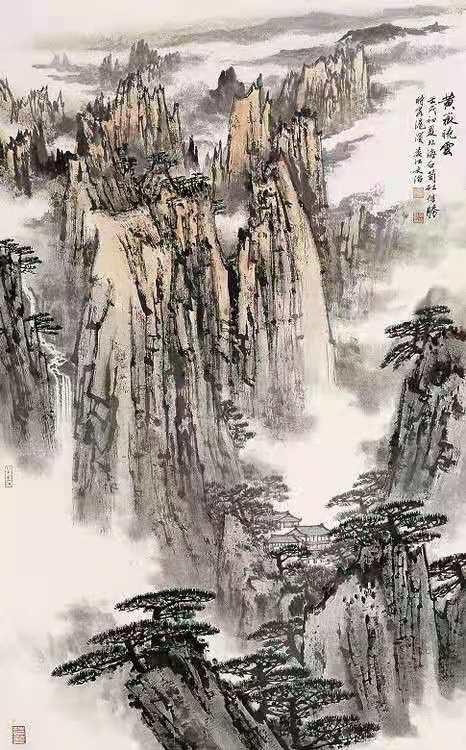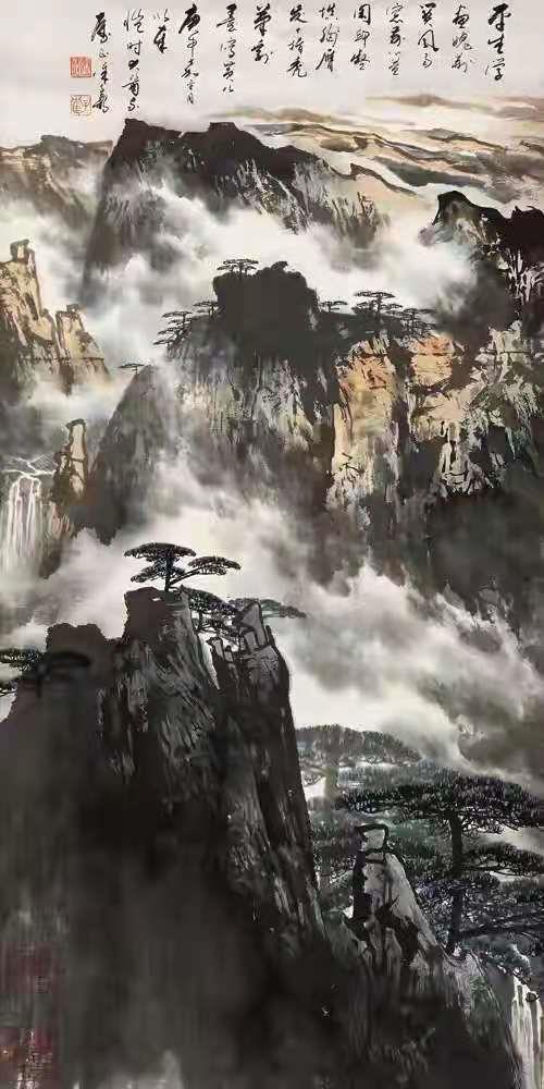 近代,中国主流山水画的创作以临摹为能事,追求笔墨的精微和构图的中正,画风日趋保守。十九世纪后期,西学东渐,中国艺坛思潮翻涌。二十世纪初的新文化运动更是推动了中国画的变革。有主张用西方写实方法改造中国画的;有追逐古代写意精神而丰富技法的;有强调写生,体察生活,外师造化中创作现实主义画风的等等文化现象。在大文化背景的促迫下,山水画在美学上发生了诸多变化。不再受文人画的局限,强化了文思和多样艺术的综合性,强化了水墨语汇的纯正性,使山水画艺术发生了重大突破。尤其是1949年新中国成立后,党和政府倡导 “ 百花齐放,百家争鸣 ” ,极大的推动了艺术的繁荣。出现了众多风格不同的流派,涌现了一批勇于变革创新的画家,山水画的风貌异彩纷呈。为了使广大爱好者学习有途,特节选100位具有代表性的名家精品供大众欣赏。