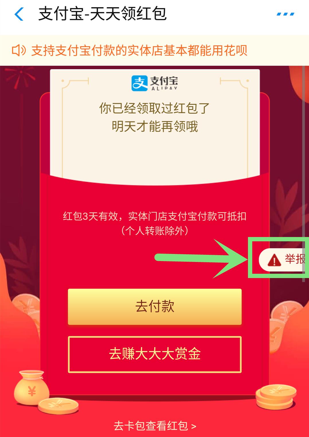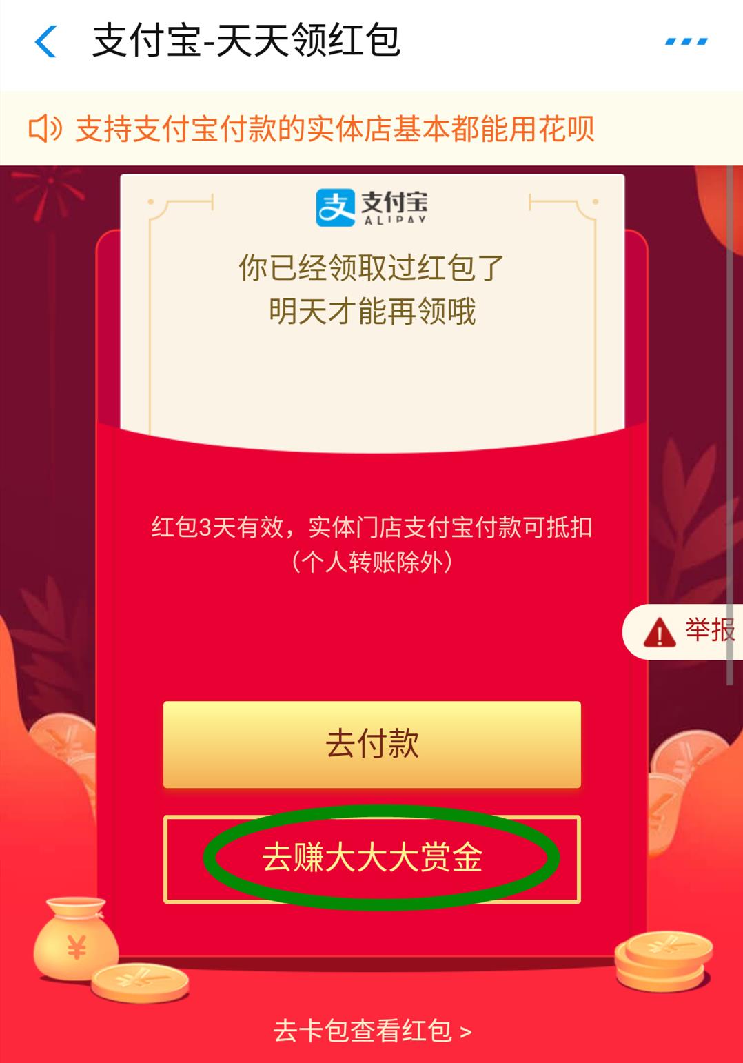 它不是,它让你每天都能领,而且还要开通花呗余额宝等等。