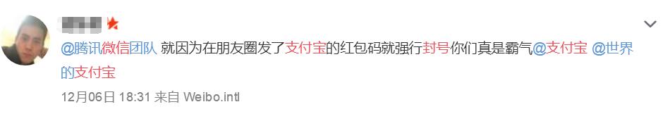 「在微博上发支付宝红包口令和二维码可能会被封号……」