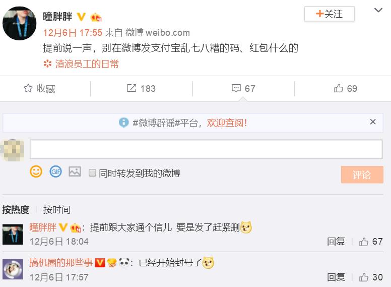 可如果去核实一下,就会发现他上一条微博还是 11 月 26 号发的。