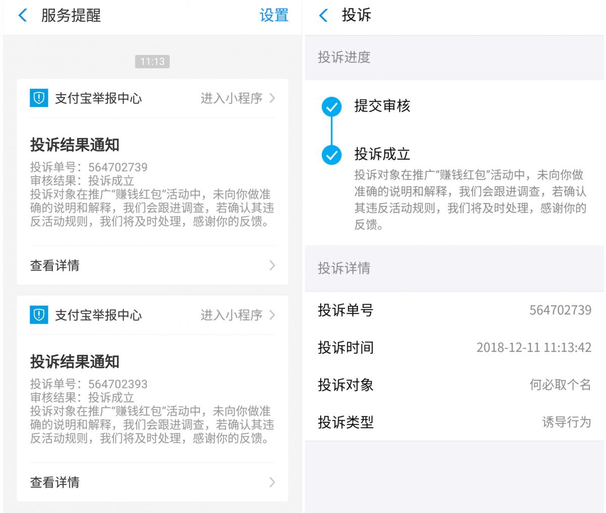 这是支付宝最近推出的功能,因为要投诉的人实在太多了。