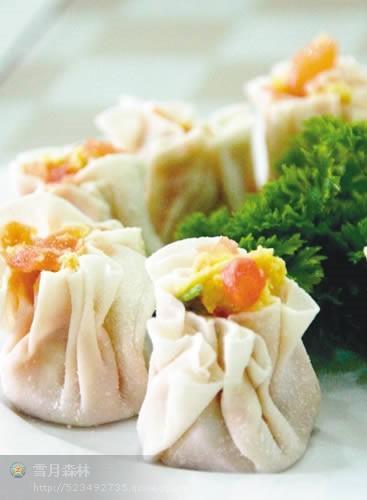 烧麦又称烧卖、肖米、稍麦、稍梅、烧梅、鬼蓬头,是形容顶端蓬松束折如花的形状,是一种以烫面为皮裹馅上笼蒸熟的面食小吃。烧卖源起元大都,在中国土生土长,历史相当悠久。现在中国南北方都有,在江苏、浙江、广东、广西一带,人们把它叫做烧卖,湖北、湖南、北京等地则将它称为烧麦。喷香可口,兼有小笼包与锅贴之优点,民间常作为宴席佳肴。