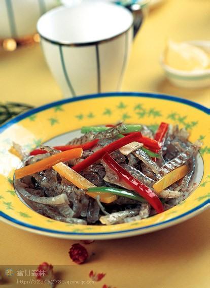三丝鱼皮,属于凉菜,爱吃鱼的湖北人,连鱼皮都有新吃饭,凉拌鱼皮,清凉爽口!