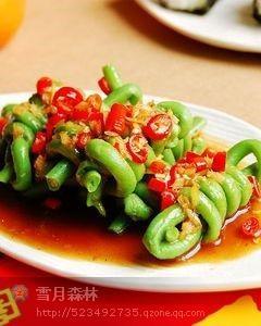 鲍汁豇豆如意卷,是从湖北家常菜姜汁拌豇豆改良而来的,将整条豇豆用水焯熟后挽成结,再浇上用姜末、鲍鱼汁、小米椒烧制而成的味汁即可,这样漂亮精致的小菜,即使在平时家宴上端出来也十分合适。关键是利用水煮后再浇汁的烹调方法,清爽可口还少油,是一道减肥的好菜!