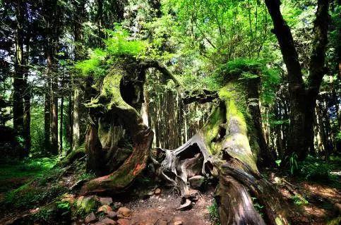 阿里山,东靠峰玉山,一年四季皆是风景,著名旅游景点有阿里山森林游乐区、阿里山夫妻树、树灵塔、邹族文化部落等等。