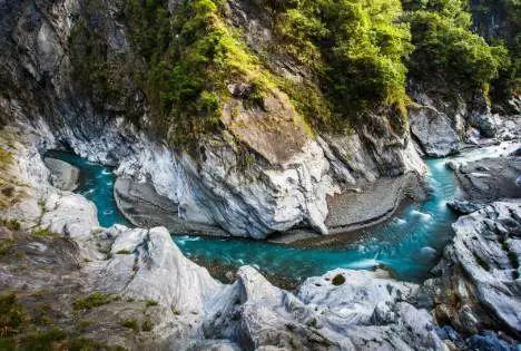 太鲁阁国家公园横跨花莲、南投及台中,以雄伟壮丽、几近垂直的大理岩峡谷景观闻名。