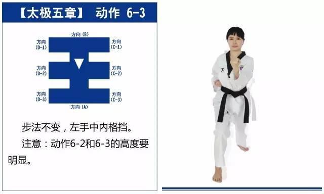 下锤拳时,击打的拳要从辅助拳内侧向外击打。中内格挡和背拳前击时,双拳的高度要明显。侧踢与侧击后,掌肘对击要同步进行。