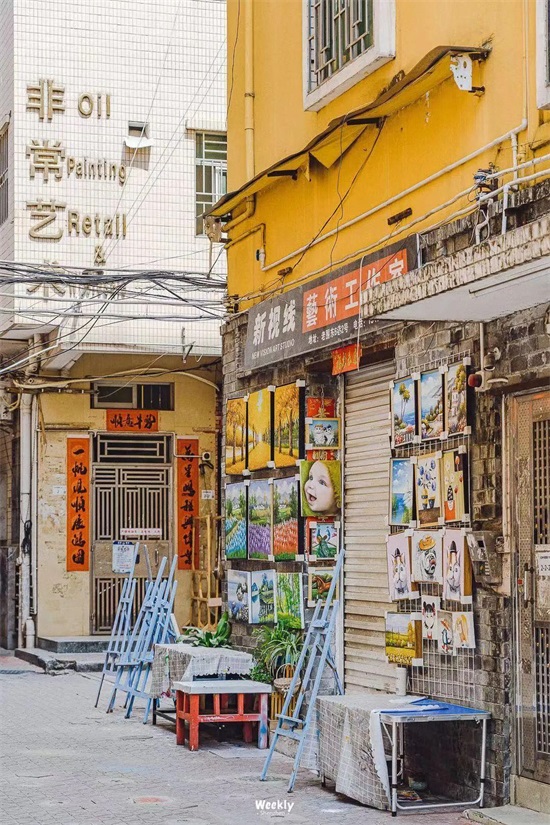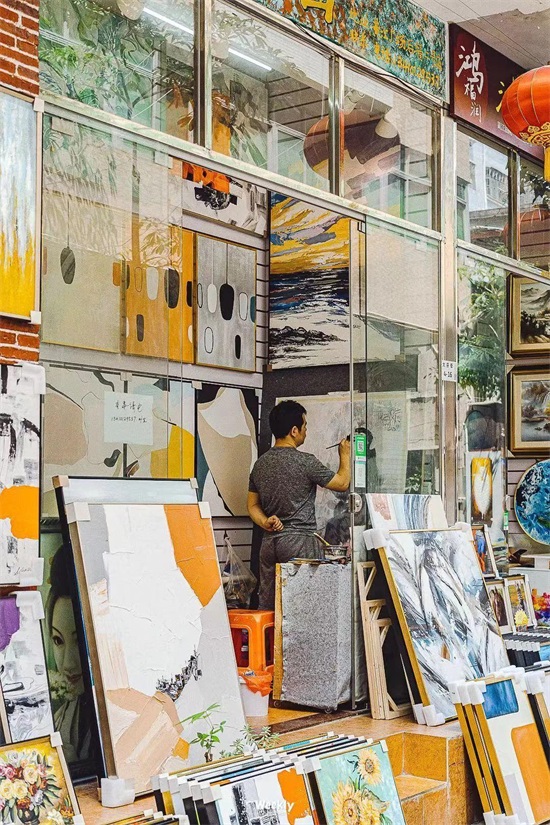 店铺有1200多家,仿佛巨型的流浪美术馆一般。画作整齐地码在店门口,蹲在路边翻个半个钟选画,想象自己是自由艺术家也不为过。