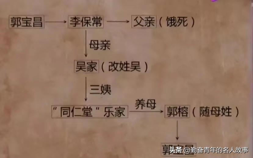 后来郭宝昌的三姨又将他赎回,以200大洋转卖给京城大户同仁堂的乐家。郭宝昌的养母郭榕曾是乐家的丫鬟,后被乐家四爷收为妾室,乐四爷那时已经70多岁无法生育,郭榕收养了郭宝昌,并先将他寄养在母亲那里,所以他随养母姓郭,改名郭宝昌,12岁时才被接入乐家。