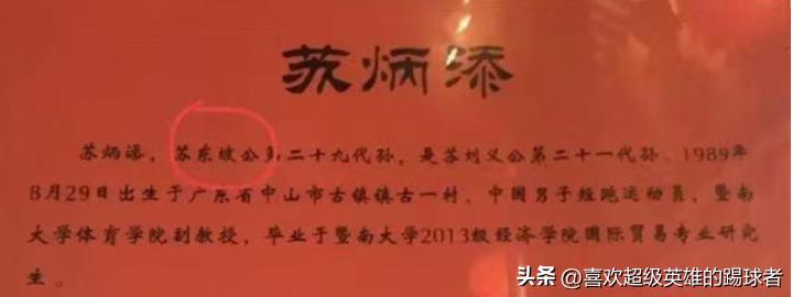 苏炳添事件的原委是某地苏氏宗祠的照片被披露,其中有记载,苏炳添为苏轼第29代孙。该事曝光后,不少网友直接献上了自己的膝盖,有的更是找到了自身至今平庸的原因,除了我爸爸不行,我祖宗也不行,不是输在起跑线上,这是输在了一千多年前啊!