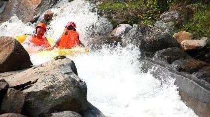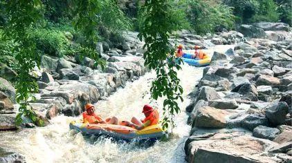 被誉为“矿泉水上的漂流”,漂流全长3公里,首尾落差128米,俯冲水坝3-5米不等,漂流全程一个半小时左右。