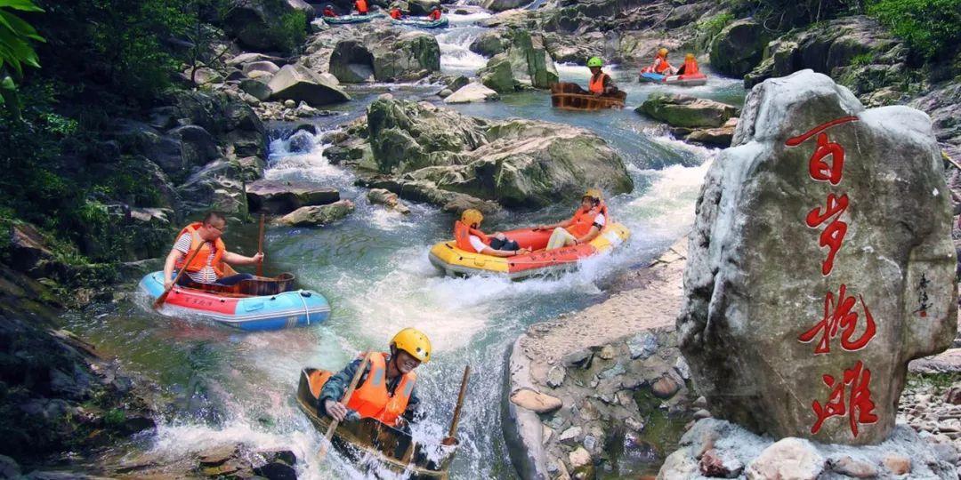 龙潭峡谷漂流地处金紫尖山脚下,漂流全长3.6公里,落差166米,是目前浙江境内落差最大,漂流速度最快、感官最为刺激的天然山泉漂流。
