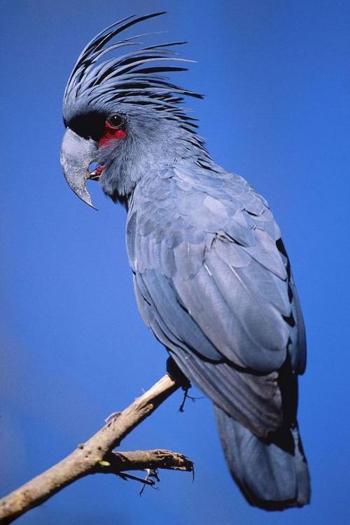 棕榈凤头鹦鹉是一种非常美丽和独特的凤头鹦鹉。它也被称为“椰子金刚”,因为它的脸上没有羽毛,所以它很像金刚鹦鹉。它是澳大利亚最大的鹦鹉。棕色凤头鹦鹉是深灰色的,冠灰黑色。脸上裸露的皮肤通常是红色的。它的颜色从白色变为深红色。颜色的亮度取决于环境和鹦鹉的健康状况。就像金刚鹦鹉一样,当兴奋或兴奋时,脸颊上裸露的皮肤会变红,头顶会鼓起来。