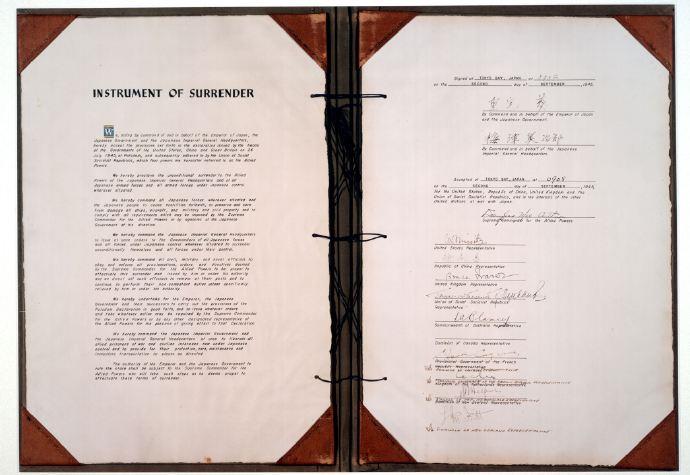 在密苏里号上签署的日本投降书是一式两份,同盟国及日本各一份。现在同盟国的一份存放在美国华盛顿的国家档案库,日本那一份则存放在江户东京博物馆。