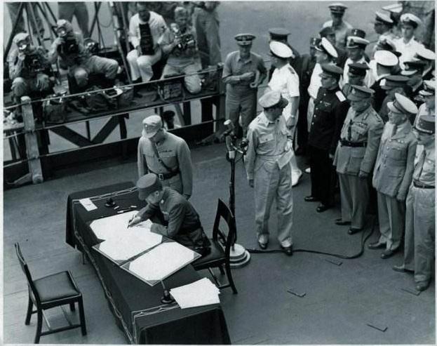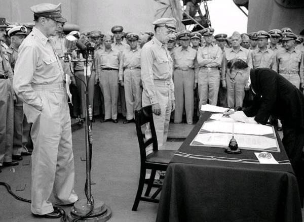 各方签字完毕后,麦克阿瑟最后致辞:“我们共同祝愿,世界从此恢复和平,愿上帝保佑和平永存!现在仪式结束。”