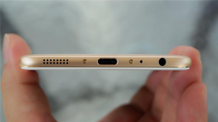 底部是3.5mm耳机孔、Type-C数据接口、扬声器。其中Type-C采用USB 3.1传输标准,对应的数据线也经过重新设计,最高可支持 60W 充电。