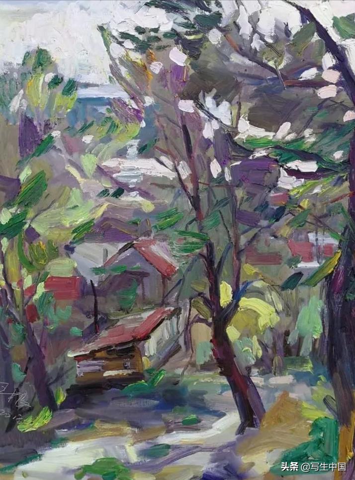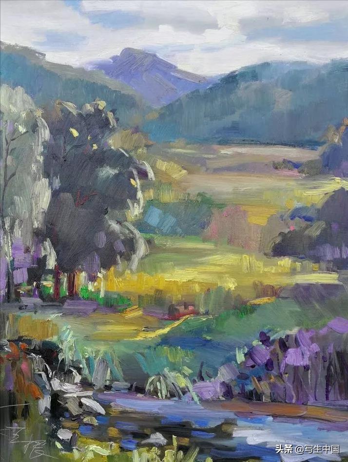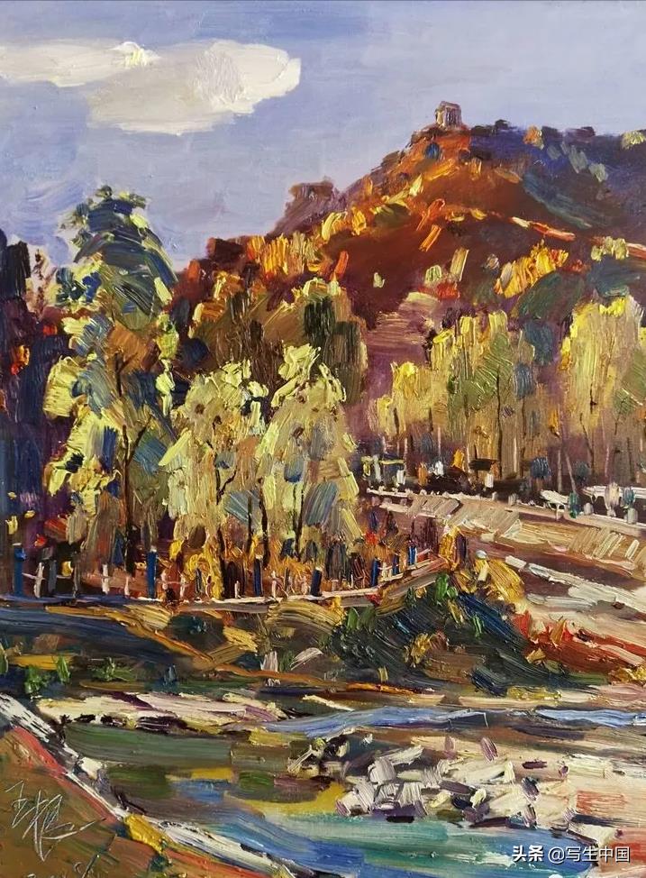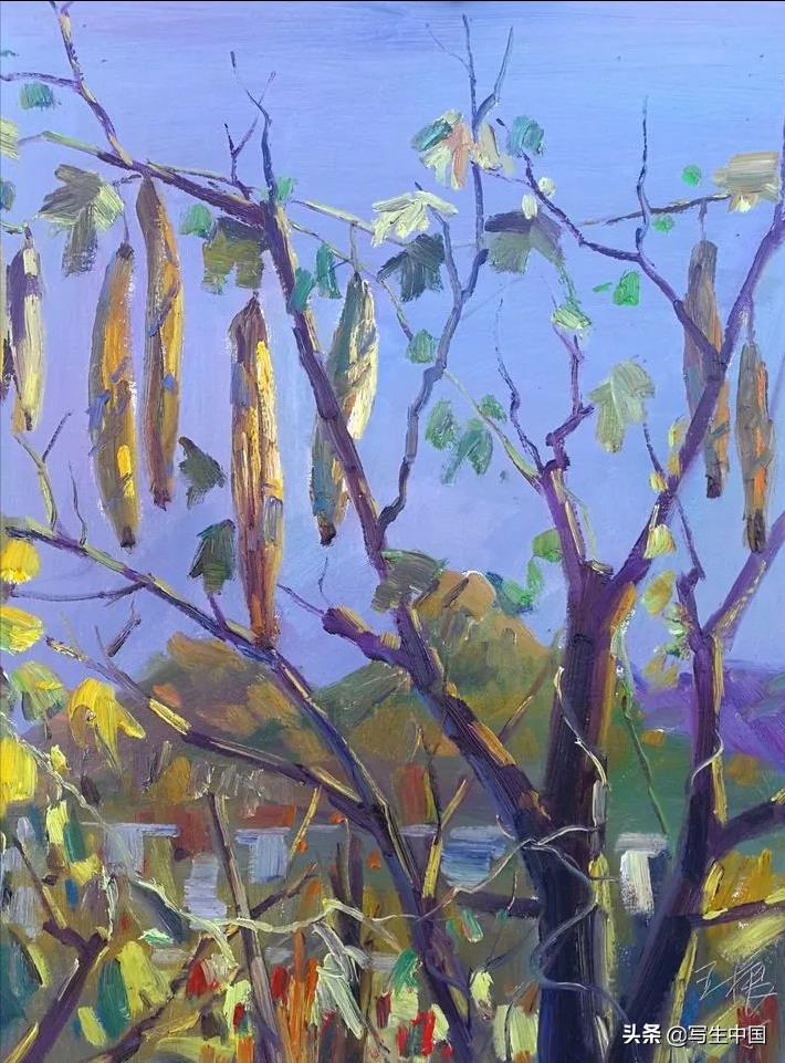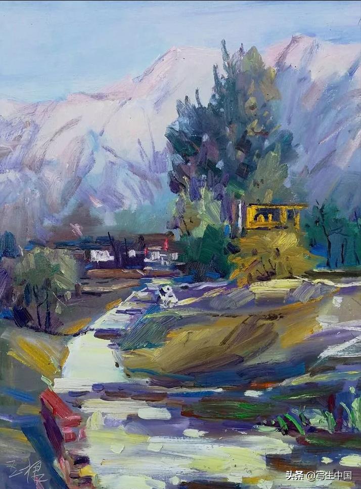 王根的风景写生作品,注重写实,呈现清新。他笔下诠释的自然景物,大都清缈,秉性恬淡。他喜欢从诗中寻找灵感来丰富自己的创作力,每幅作品都流露出真挚的情感,充满灵性与抒情色彩……